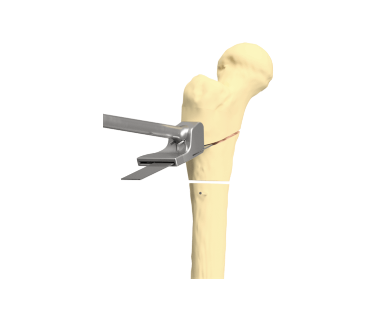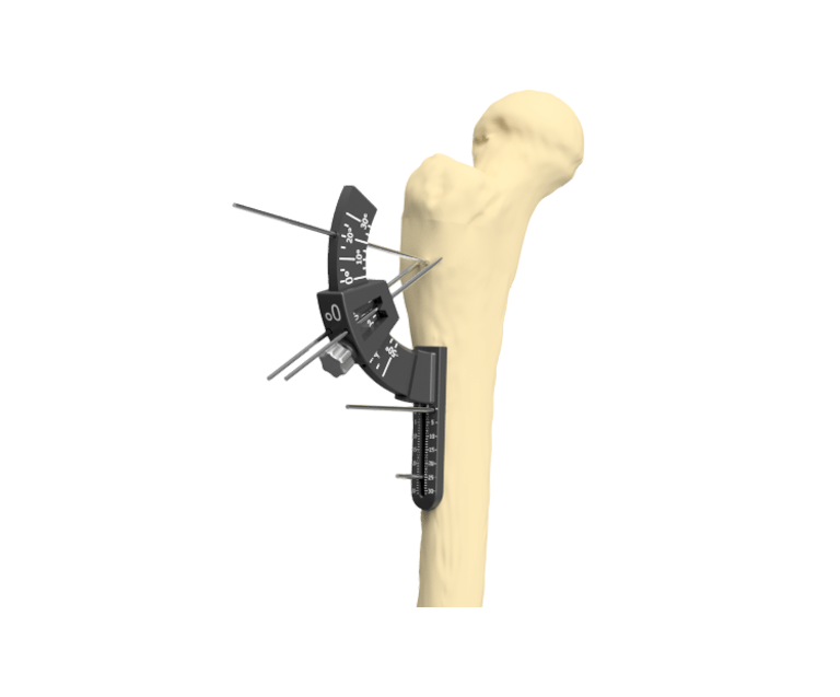 Als bisher erstes Unternehmen haben wir mit unserem Instrumentarien-Set erreicht, dass die Chirurg:innen bei der multidimensionalen Umstellungsosteotomie des kindlichen proximalen Femurs in jedem der OP-Schritte (Osteotomie, Umstellung & Osteosynthese) mechanisch geführt werden. Die Instrumentarien lassen sich auf einfache Art und Weise sowohl präoperativ als auch intraoperativ patienten-individuell anpassen.